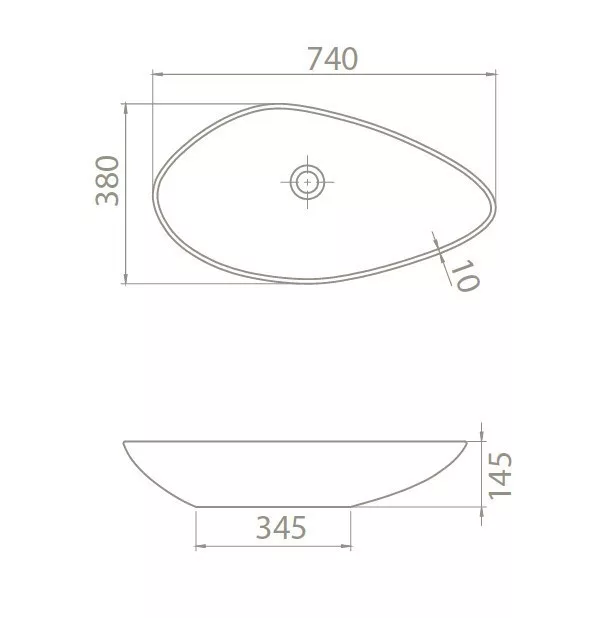 CeraStyle OLIVE - PULTRA ültethető - Top Counter - porcelán mosdó - 75 x 38 cm