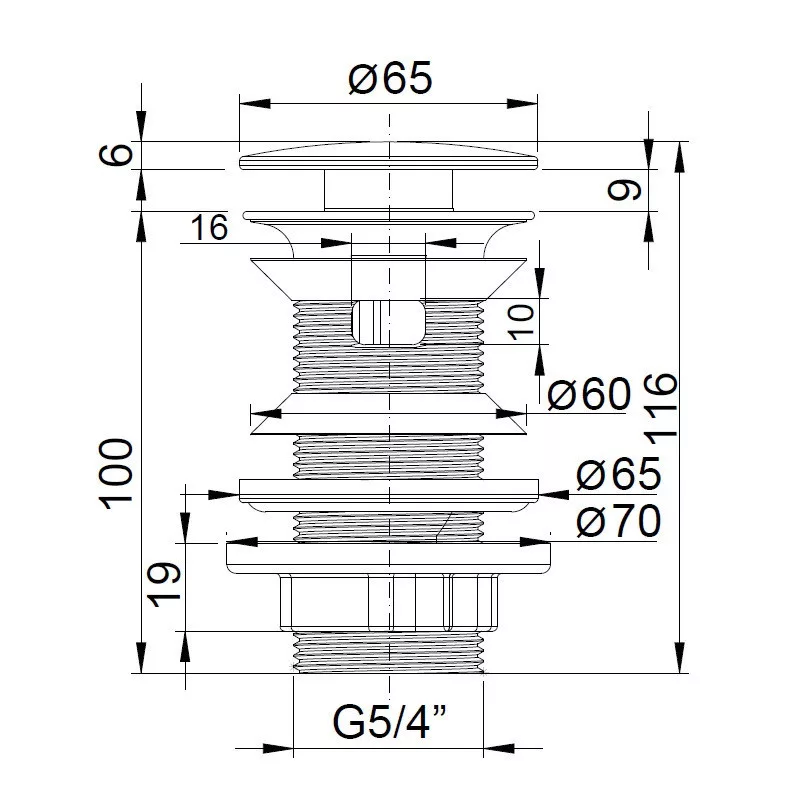 Klikk - klakk PVC leeresztő - KEREK - KRÓM -univerzális- túl/nem túlfolyós mosdóhoz - 5/4" - Ø 65 mm