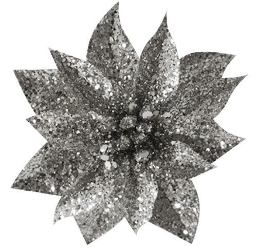 Kvet MagicHome Vianoce GlitterPoinsettia, so štipcom, strieborný, veľkosť kvetu: 9 cm, dĺžka kvetu: 8 cm, 6 ks
