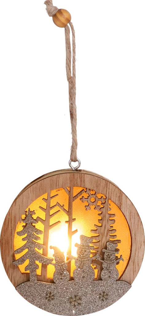 MagicHome karácsonyi dekoráció, Hóember gömbben, LED, felfüggeszthető, MDF, 8,5 x 2 x 8,5 cm