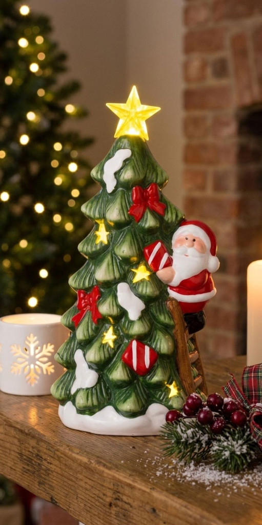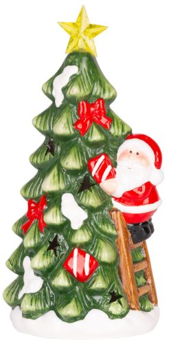 MagicHome karácsonyi dekoráció, Karácsonyfa Mikulással, LED, terrakotta, felfüggesztő, 11 x 8,7 x 21