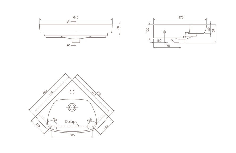 VivaStyle ARDA fali sarokszekrény CeraStyle ARDA porcelán sarokmosdóval 46 x 46 cm - BALOS