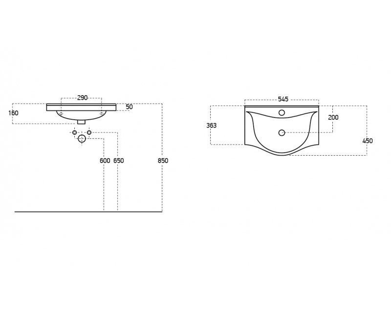 VivaStyle BIANKA 55 lábon álló fürdőszobabútor 2 fiókos Sanovit ALBATROS 10055 mosdókagyló 55x45 cm