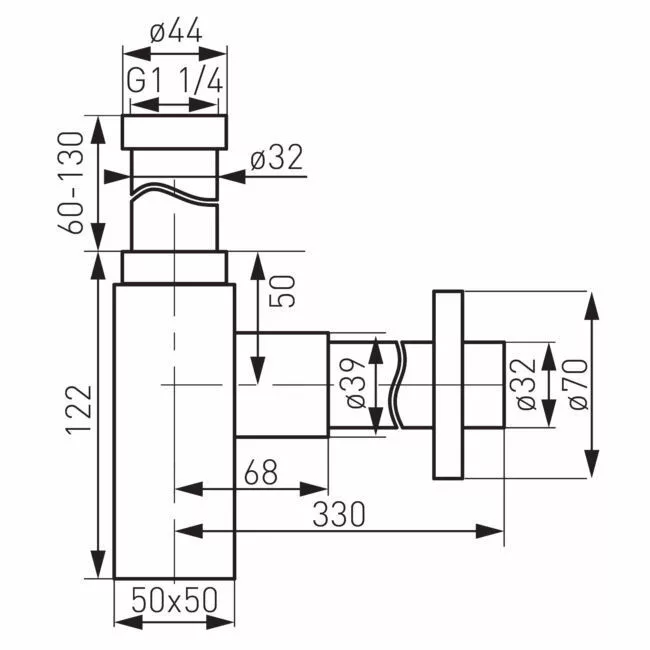 VivaStyle QUADRO LUX mosdószifon - króm - szögletes - fém - leeresztő nélkül - Ø 5/4" - Ø 32 mm